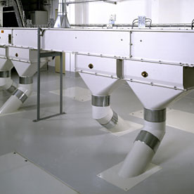 Transportador de cadena RFKG: los silos y las plantas de manipulación, así como las grandes plantas de la industria transformadora, presentan altas exigencias en el transporte de productos. Con el transportador de cadena RFKG Bühler suministra una máquina de alto rendimiento para la distribución y la descarga de hasta 1.200 toneladas de producto y su transporte a distancias de hasta 150 metros. El transportador de cadena RFKG resulta indicado tanto para el transporte de harinas como de productos de grano grueso y fino. Además del transporte horizontal, también permite un transporte inclinado.