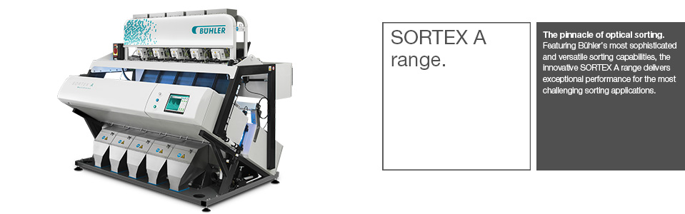 Sortex A ColorVision™ y MultiVision™: la innovadora gama SORTEX A rompe el molde y presenta algunas de las capacidades de clasificación más sofisticadas y versátiles de Bühler para ofrecer un excepcional rendimiento en las aplicaciones más complejas.